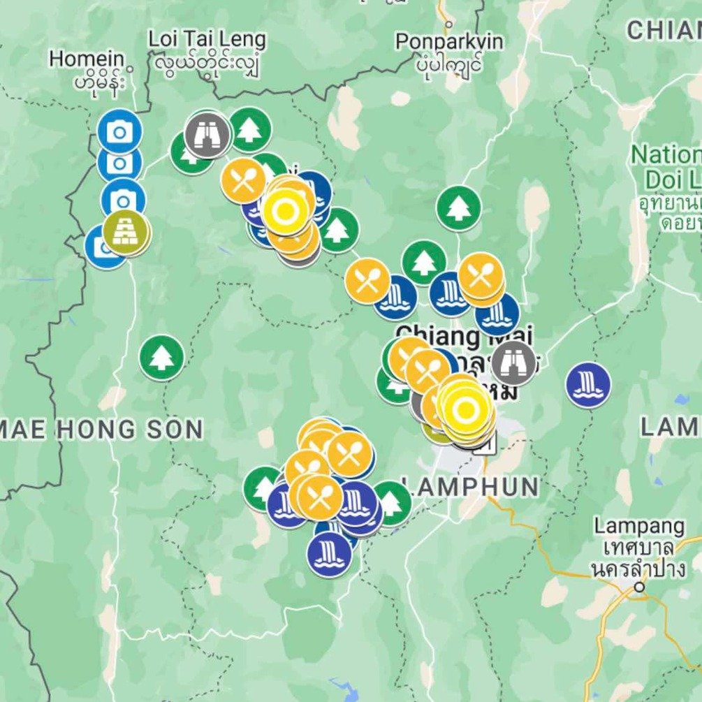 If you’re looking to explore the very best of North Thailand, this map is perfect for you! It features over 175 pins of hidden gems, including secluded viewpoints, waterfalls, nature spots and amazing places to eat and stay.